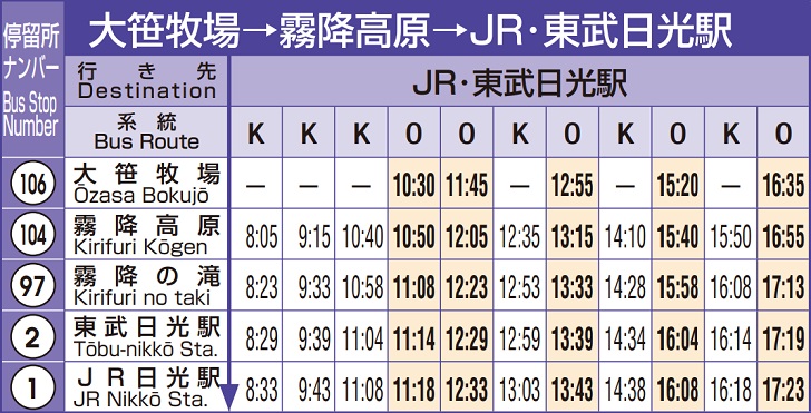 霧降高原には、東武日光駅から霧降高原行バスや大笹牧場行きバスがあり、おおよそ35分ぐらいで到着します。